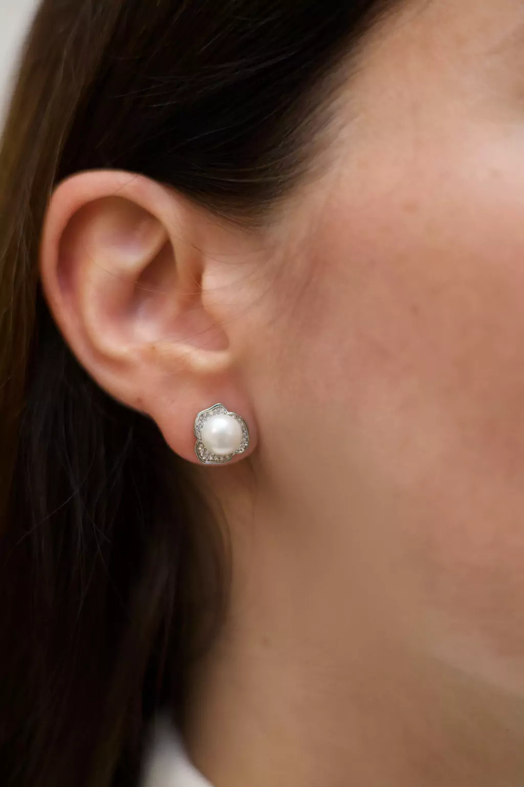 Com banho de ródio branco,pe dra de zircônia incolor e pérola shell.