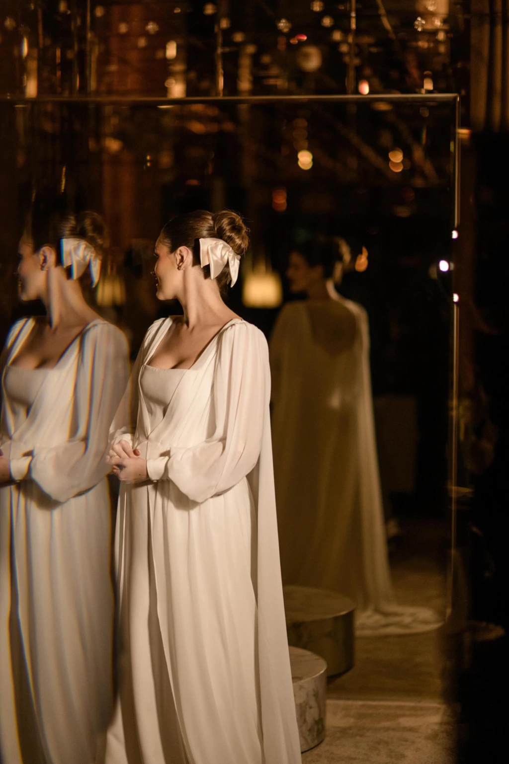 Descrição: O Laço Noemi é costurado à mão em nosso ateliê.